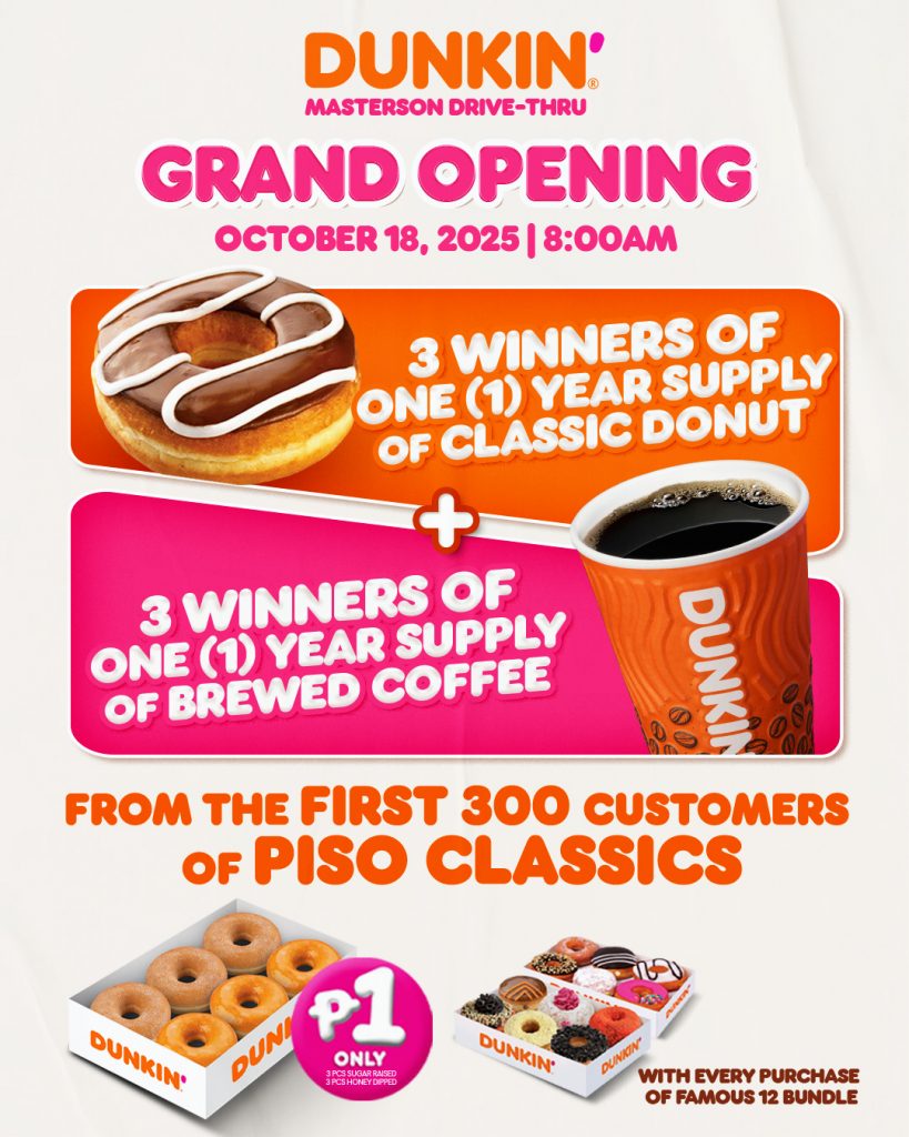 It’s official — Dunkin’ Masterson Drive-Thru has opened its doors on October 18, 2025, marking a new milestone as the BIGGEST Dunkin’ store in Cagayan de Oro City.