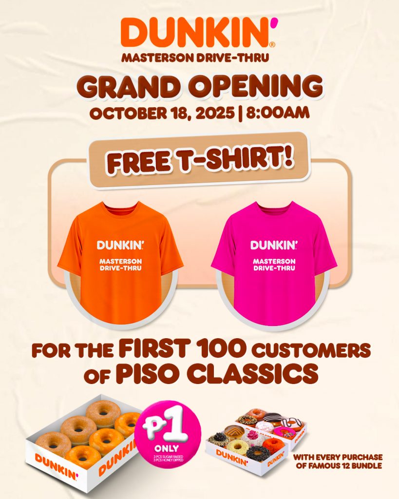 - The first 100 customers of the Piso Classics received a limited-edition Dunkin’ Masterson Drive-Thru shirt.