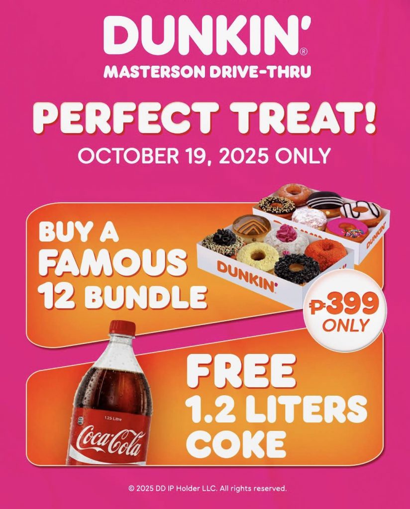 The celebration continued with the Perfect Treat Promo, Buy a Famous 12 Bundle for ₱399 and get a FREE 1.2-liter Coke. Available exclusively at Dunkin’ Masterson Drive-Thru.