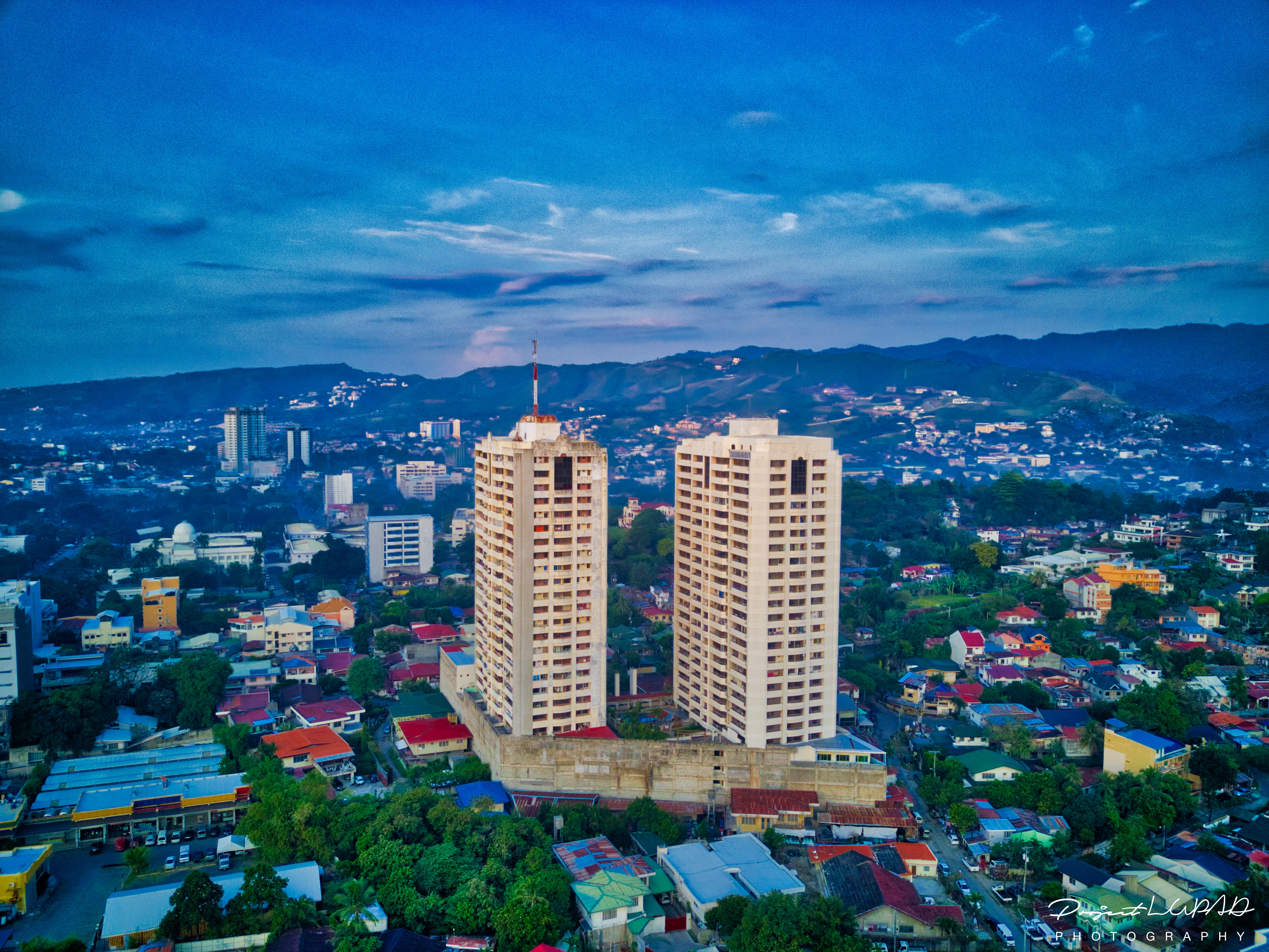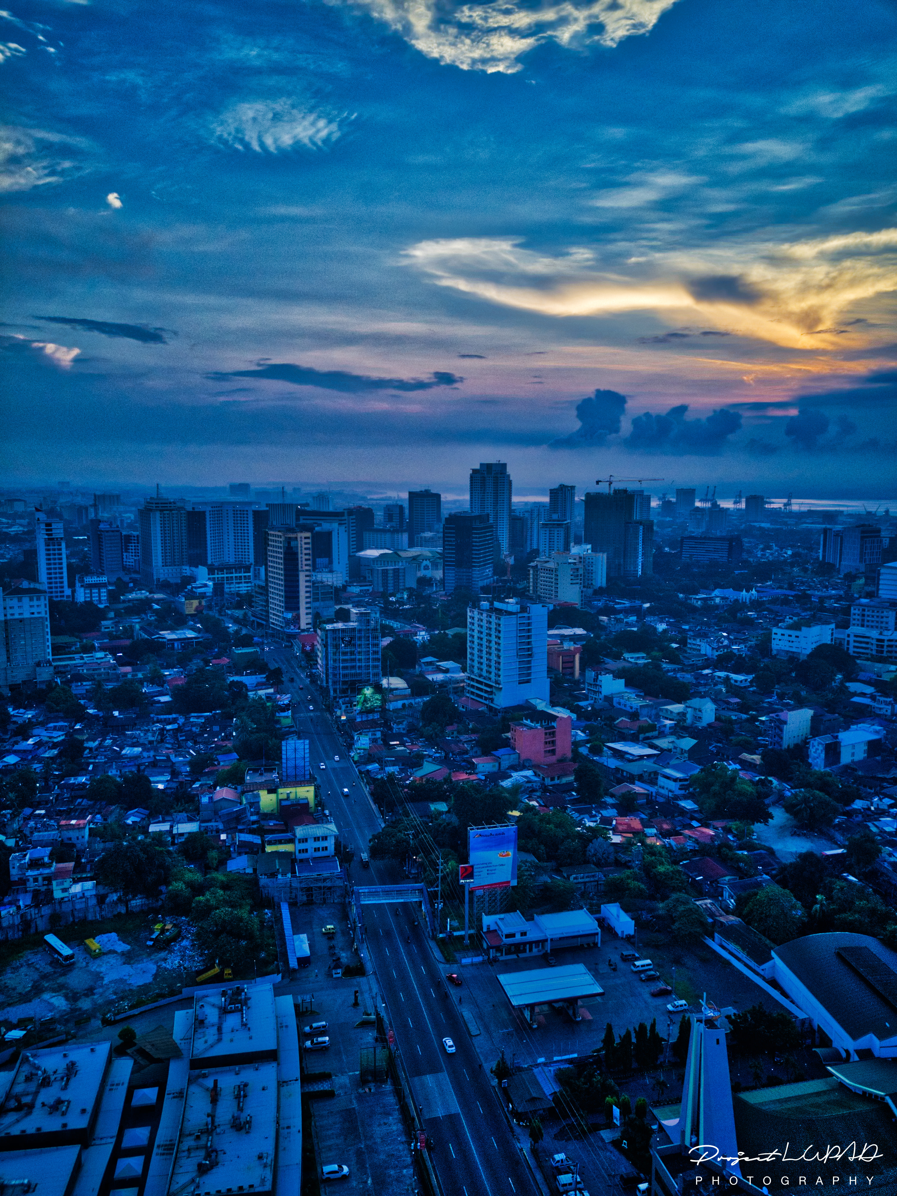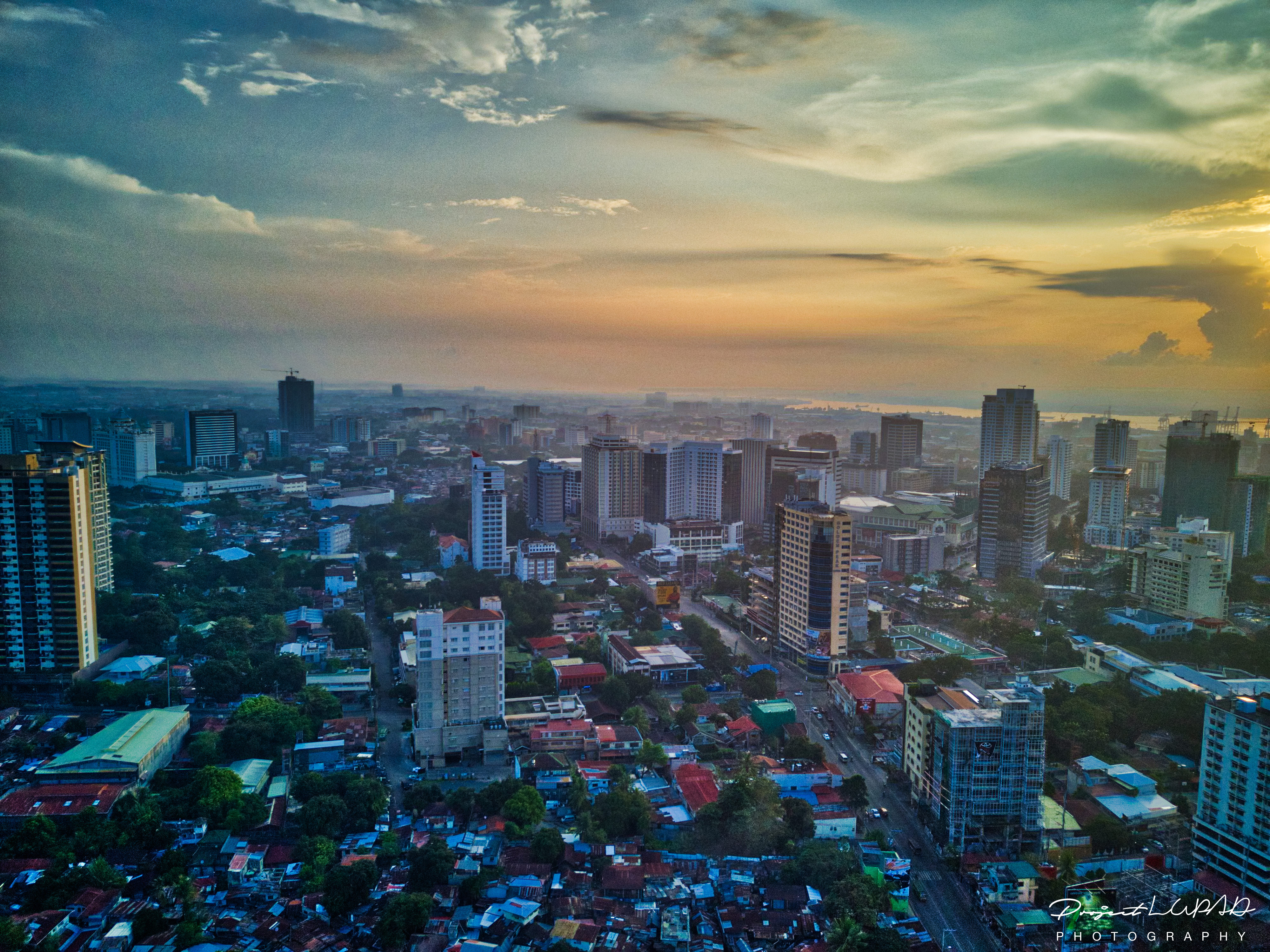 Magnificent aerial view of Cebu City’s skyline taken during the golden hour from 5:00 AM to 6:00 AM, from dawn to sunrise.